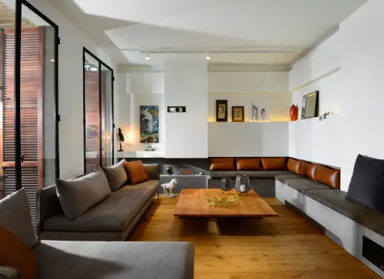 העיצוב הזה נוצר עם לקוח שהחלום שלו היה להיות אדריכל, הוא לקח חלק גדול בעיצוב. מדירה עם ריח חזק של עובש ורטיבויות, עיצבנו ביחד את הדופלקס מחדש והוספנו תקרה אקוסטית ששינתה את כל
